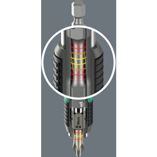 ●専用のビットホルダ(053923)と併用することで、3つのトーション(トライトーション)が作用し、ビットの長寿命化を実現しています。