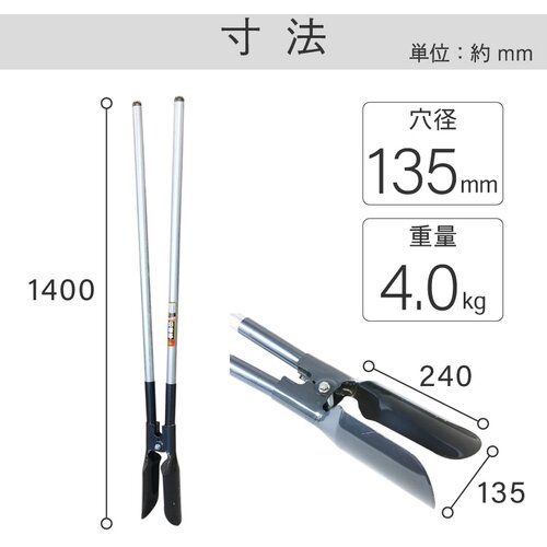 ●ポール、杭などをたてるための縦穴を掘る下穴掘り作業用。
