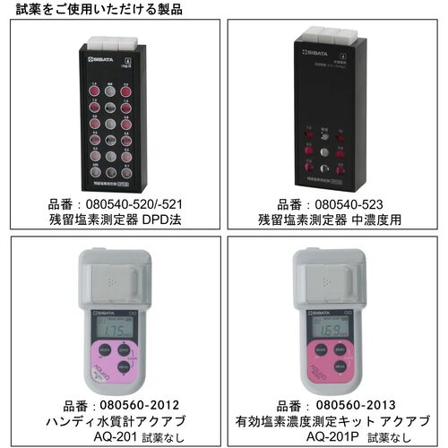 ●※錠剤タイプのDPD試薬(100入:080540-504、500入:080540-505(残留塩素測定器DPD法専用))もあります。