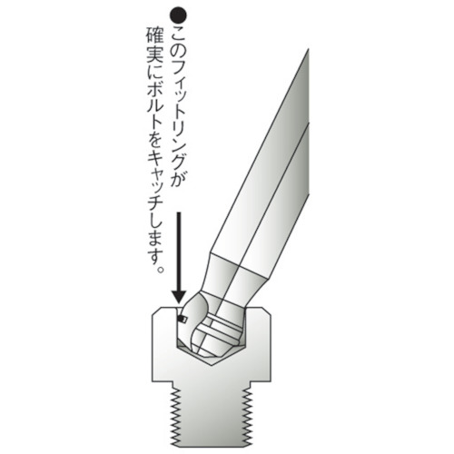 ●テーパーヘッド[[R下]]先端に埋め込まれたフィットリングがキャップボルトを確実に捕らえるので、片手で目的のねじ穴に挿入することができます。