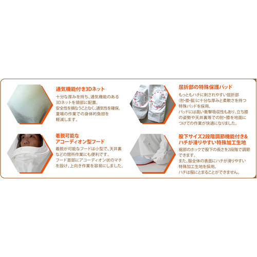 ●フード(ヘルメット付)、つなぎ服、手袋、収納用バッグ、電動ファンセット(ファン2個、バッテリー、充電アダプター、接続ケーブル)