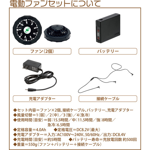 ●重量=550g(ファン+バッテリー+接続ケーブル)