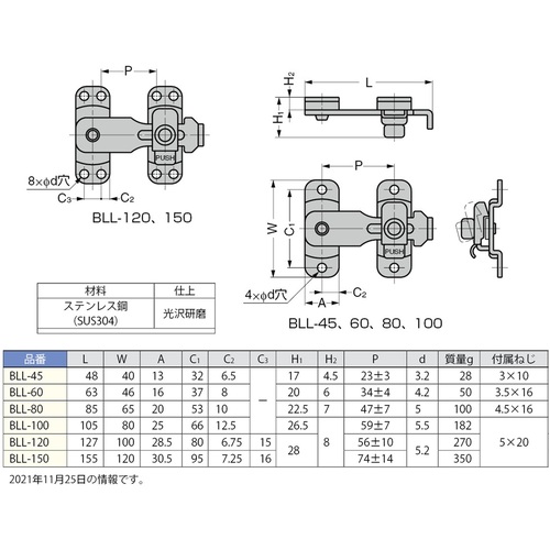 ●スガツネ工業 ステンレス製内掛け BLL型(140-059-073)
