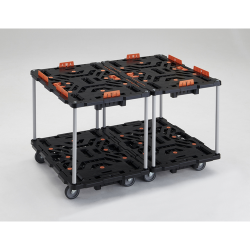TRUSCO 連結式樹脂製2段台車 ビートル 900X600 自在5輪 コボレ止めセット とめたろう付 ハンドルなし BT920KJ5-E100T