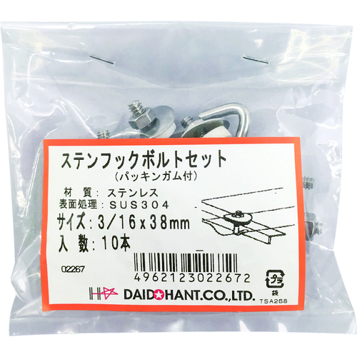 9. DAIDOHANT ステンレス フックボルトセット 3/16×38 (10個入) 10102267