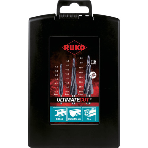 9. RUKO 4枚刃スパイラルステップドリル 3本セット ハイス ルナテックコーティング 101087PRO