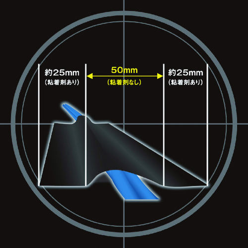 ●商品の特性上、両端部(粘着剤あり部分)が±5mm程度ズレる場合があります。