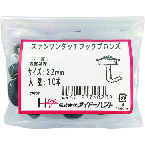 9. DAIDOHANT ステンレスワンタッチフック ブロンズ 22mm (10本入) 10176020