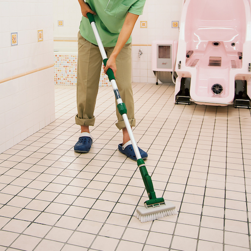 ●清掃レベルや清掃区域に応じて色分け可能なカラーゾーニングに対応した床清掃用のデッキブラシとして。