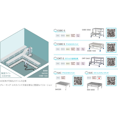 ●天板が縞板のため、従来品のアルミ形材に比べて滑り止め効果があります。