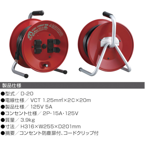 ハタヤ トクサンデーリール 単相100V 20m D-20R