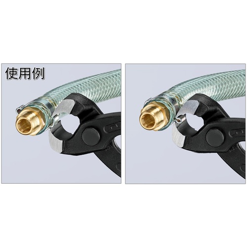 ●1イヤークランプおよび2イヤークランプ(Oetiker製品など)を簡単かつ確実に固定できます。