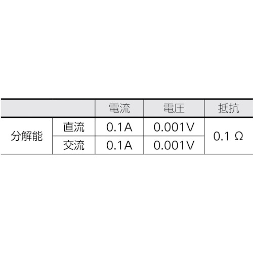 ●分解能 直流電流:0.1A 直流電圧:0.001V 抵抗:0.1Ω 交流電流:0.1A 交流電圧:0.001V 抵抗:0.1Ω