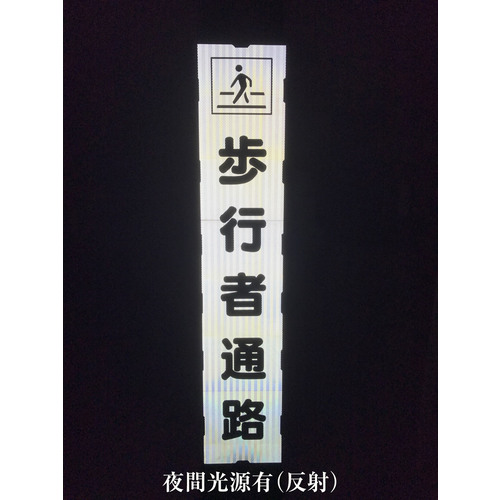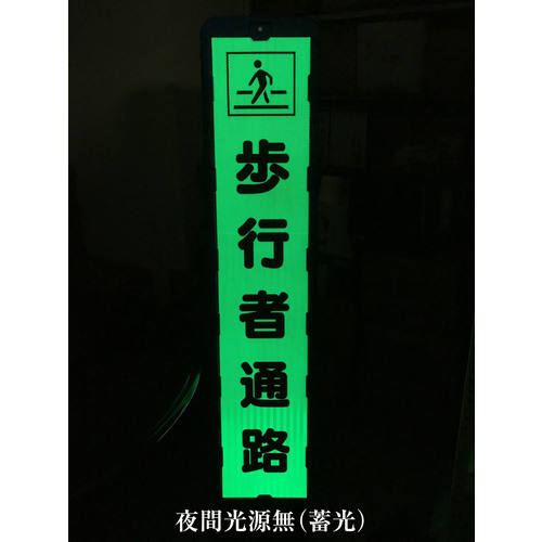 ●反射機能と蓄光機能を併せ持っているので従来注意喚起を行えなかった、夜間光源を持たない歩行者への注意喚起をおこなうことが可能です。