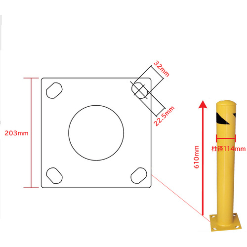 ●ベースプレート4か所にアンカー用ホール、遊びを持たせた穴形状で施工しやすくなっています。