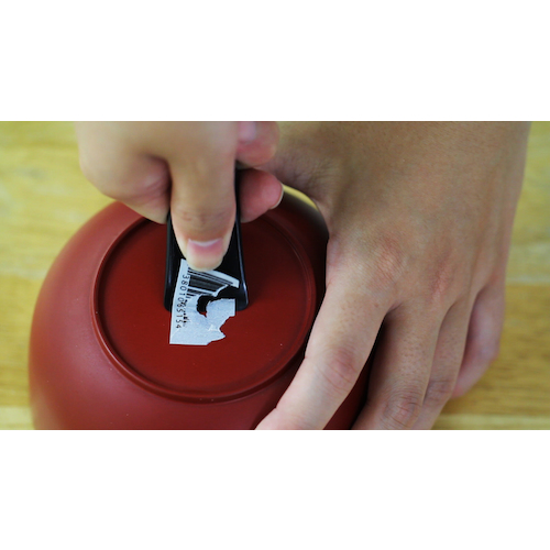 ●付属のPOM製特大ヘラにより、簡単にシール・ステッカーをはがせます。