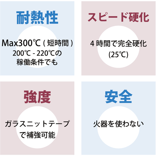 ●熱のかかる環境での補修に ヒートサイクルに強いタイプです。