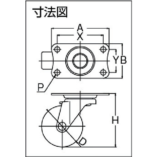 ユーエイ プレート式 自在 キャスター エラストマー 車輪径50mm  Eタイプ E型 取付寸法56×28 E-50EL