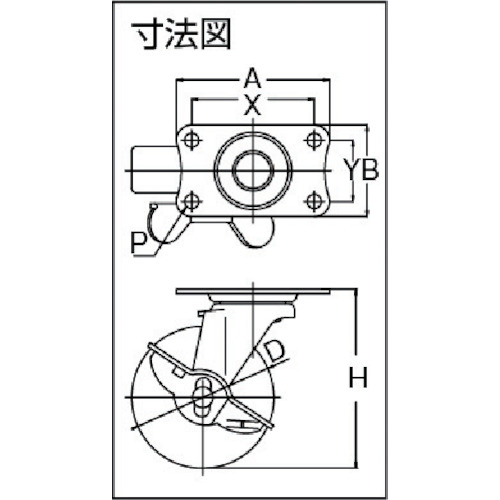 ユーエイ プレート式 自在 キャスター ナイロン 車輪径65mm ストッパー付き Eタイプ E-S型 取付寸法56×28 E-65NS