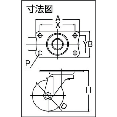 ユーエイ プレート式 自在 キャスター ウレタン 車輪径65mm  Eタイプ E型 取付寸法56×28 E-65UR