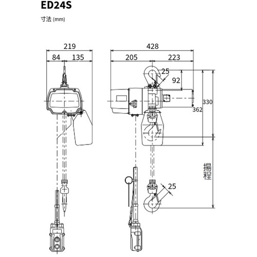 KITO KITO 電気チェーンブロック キトーセレクト ED形 定格荷重240kg 揚程3m 単相100V1速形 【選べる定格荷重】 ED24S  ED24S