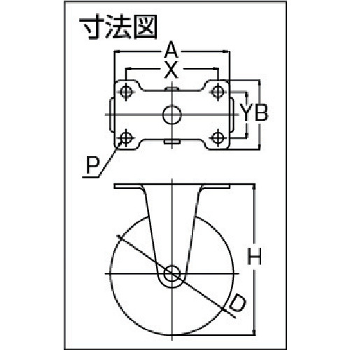 ユーエイ プレート式 固定 キャスター ウレタン 車輪径65mm  Eタイプ ER型 取付寸法56×28 ER-65UR