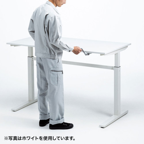●ハンドルを回して、デスク天板を上下させる昇降デスクです。