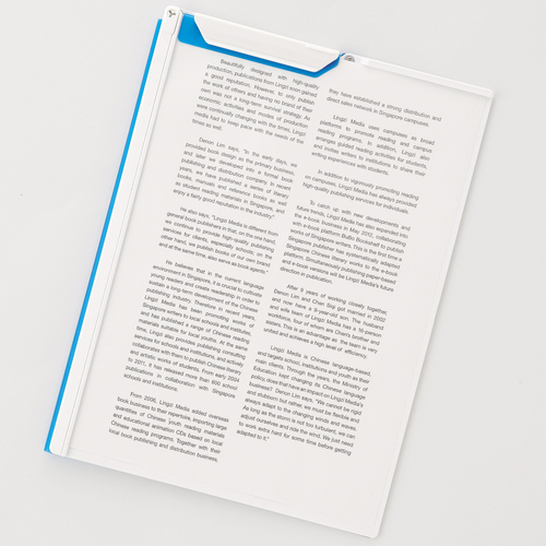 ●ボード面がしっかりしているので、立ったままの記入がしやすい薄型軽量タイプのクリップファイルです。