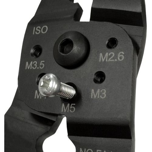 ●絶縁端子・裸圧着端子の圧着、被覆線のストリップ作業、電線の切断がこれ一本で可能です。