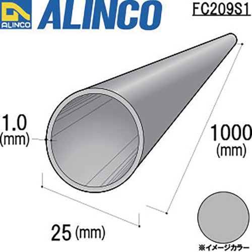 アルインコ アルミ丸パイプ 25×1.0 シルバー艶消し 1m FC209S1