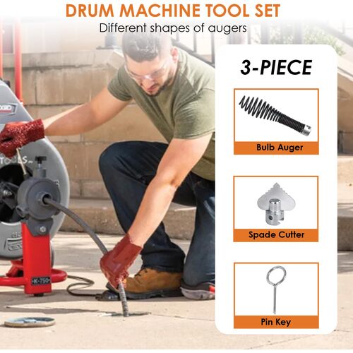 ●ドロップヘッドオーガー:頭部が曲がるので、曲管など入りにくい配管で使用します。