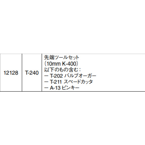 ●セット内容:T202(62995)バルブオーガー、T211(63035)スペードカッター、A-13(59230)ピンキー