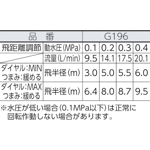 ●水圧により上部が回転し、扇形から円形に散水できます。
