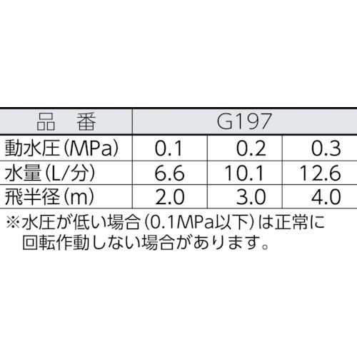 ●飛半径(m)/動水圧0.1MPa
