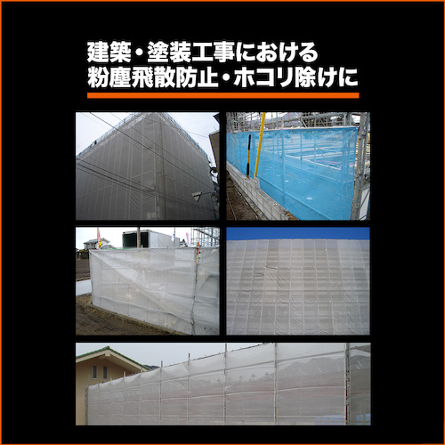 ●塩ビ2類メッシュに比べ約15%軽量で、約3年の耐候性能を持った建築足場養生メッシュです。