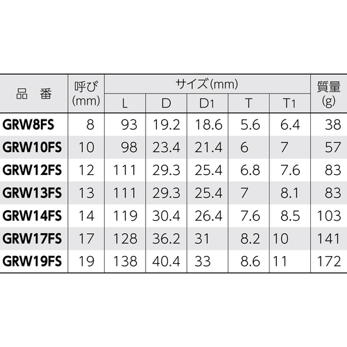 9. スーパー ギアレンチ フレックスショートタイプ 呼び:10 L=98mm GRW10FS