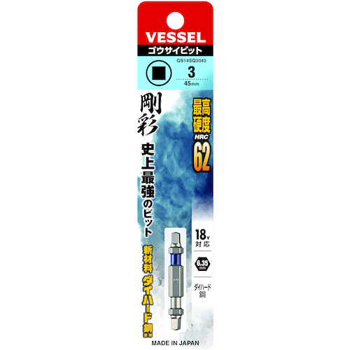 VESSEL 剛彩ビット (両頭スクエア) SQ3×45mm GS14SQ3045