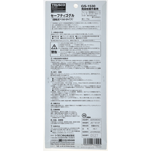 TRUSCO 飛来粉塵用セーフティゴーグル ポリカーネートレンズ GS-1530