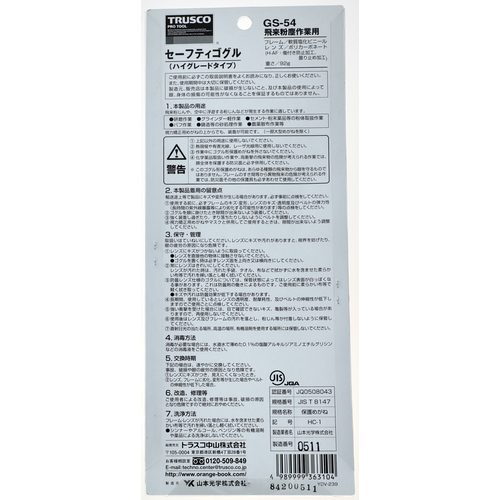 9. TRUSCO 飛来粉塵用セーフティゴーグル ポリカーネートレンズ GS-54