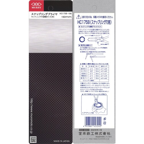 メリー スナップリングプライヤ(穴用) HC175B 替爪式・ロングピン付 190mm HC175B