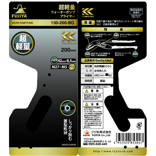 フジ矢 超軽量ウォーターポンププライヤー(黒金) 130-200-BG