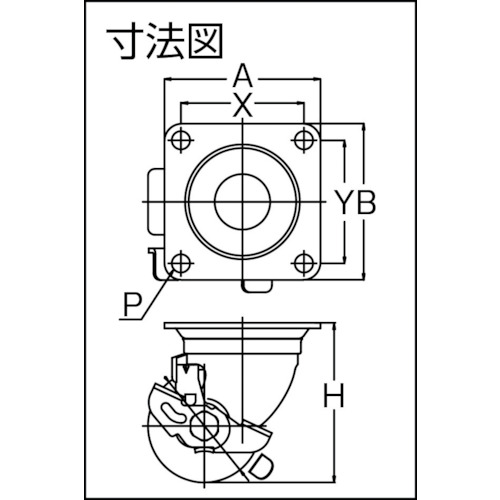 ユーエイ プレート式 自在 低床キャスター 強化ナイロン 車輪径65mm ストッパー付き Hタイプ HG-S型 取付寸法71×71 HG-65GNBS