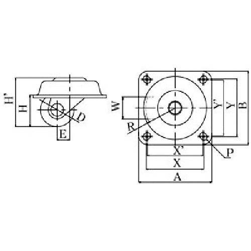 ユーエイ プレート式 自在 低床キャスター 強化ナイロン 車輪径32mm  Hタイプ HGL型 取付寸法55×55(53×53) HGL-32GNB