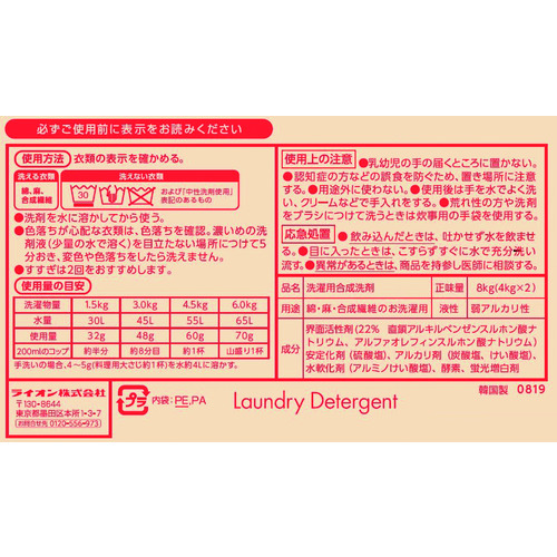 ●酵素配合で高洗浄力の衣料用洗剤です。