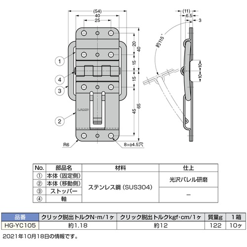 SUGATSUNE (170099093)HG-YC105オールステンレス鋼製キャッチ付平蝶番 HG-YC105