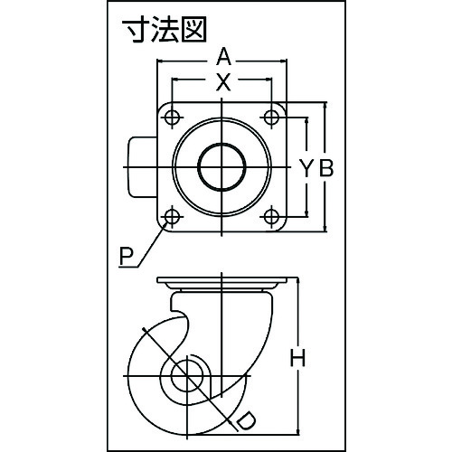 ユーエイ プレート式 自在 低床キャスター 強化ナイロン 車輪径75mm  Hタイプ HSG型 取付寸法63×63 HSG-75GNB