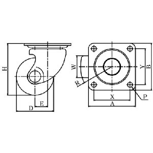 ●機器の設置などによる長時間の重荷重による車輪の変形が起きにくくなっています。
