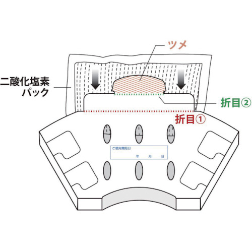 ●二酸化塩素パック(成分:亜塩素酸ナトリウム、焼成ケイ酸マグネシウム)