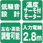 ●風量([[M3]]/min):50Hz:弱180・中260・強390/60Hz:弱290・中380・強500
