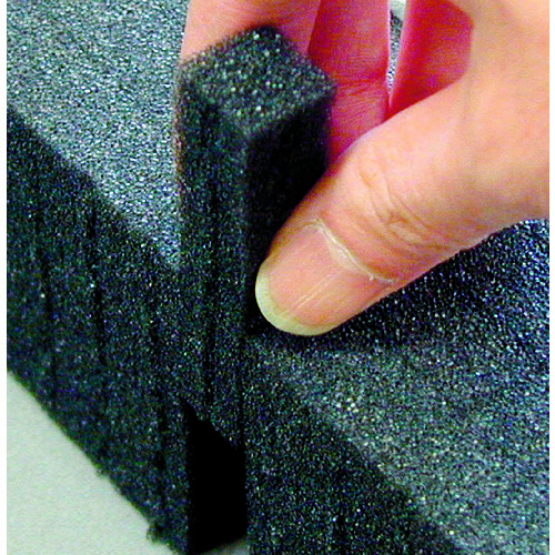 ●本体の切れ目入り軟質ウレタンは15mm角の切れ目があり、収納物に合わせて抜き形状を作成できます。